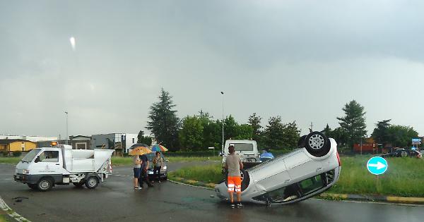FORMIGARA - Si schiantano nel cuore della rotatoria: un’auto sbanda appena ma riesce a rimanere in carreggiata, l’altra ‘decolla’ e si ribalta. Scontro da brividi ieri pomeriggio alle porte di Formigara. L’incidente si è verificato poco dopo le 17 lungo il rondò in cui si incrociano la provinciale 38 per San Bassano e il ‘sentiero dell’Adda’. Per cause in corso d’accertamento, due vetture sono entrate in collisione. Tre le persone accompagnate in ospedale a Crema: una 46enne di Formigara, una giovane di 22 anni, e un ragazzo di 16. Il loro quadro clinico non desterebbe alcuna preoccupazione. Rilievi della polizia stradale di Pizzighettone.