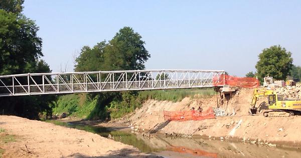 OSTIANO — Ruspe in azione per salvare e mettere in sicurezza il ‘Ponte della Barca’, chiuso da oltre un anno per i danni provocati da una piena del fiume Mella. I lavori sono promossi dal Comune, dal Parco Oglio Sud e dall’Aipo, che hanno fatto partire il cantiere appena il livello dell’acqua è sceso e si sono presentate le condizioni ideali per eseguire l’intervento da 130mila euro, finanziato grazie ai fondi concessi dalla Regione Lombardia. L’opera verrà conclusa entro la fine di agosto: una notizia positiva per gli amanti della bicicletta, perché il ponte rappresenta un collegamento fondamentale della ‘Via dell’Oglio’, la cosiddetta ‘Greenway’, ovvero la maxi ciclabile che dalle montagne di Ponte di Legno arriva fino al fiume Po seguendo il corso dell’Oglio. L’intervento è pensato per consolidare le sponde intorno alla struttura riservata ai ciclisti, pesantemente erose dalla corrente, tanto da mettere a repentaglio la stabilità del ponte; inoltre sono previste opere di consolidamento del ponte stesso. I lavori di messa in sicurezza sono stati affidati alla ditta Suardi di Malagnino, che sta operando in riva al fiume senza interruzioni. Ieri il sindaco Lorenzo Locatelli ha effettuato un sopralluogo sul cantiere e ha espresso soddisfazione per la partenza dei lavori, sottolineando l’importanza dell’opera: «E’ un intervento fondamentale — spiega — perché il ponte rappresenta un tratto importante della ‘Greenway’, inoltre non bisogna dimenticare che nuove piene avrebbero peggiorato ulteriormente la situazione. Appena l’acqua si è abbassata ci siamo mossi per aprire il cantiere: entro agosto il ponte sarà di nuovo percorribile. La riapertura è molto attesa, anche perché questa ciclabile è percorsa da appassionati che arrivano anche dall’estero. Tra l’altro proprio in questo periodo sono in corso anche dei lavori di manutenzione straordinaria per migliorare le condizioni della ‘Greenway’ nel nostro territorio».