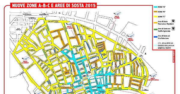 Le zone per la sosta diventano solamente tre, A, B e C, eliminando la precedente suddivisione. La zona A comprende l'area pedonale e la zona a traffico limitato delimitata dai varchi elettronici di controllo degli accessi. La zona B comprende la parte di ZTL non controllata dai varchi elettronici, infine la zona C è la restante parte della ZPRU (Zona di Particolare Rilevanza Urbanistica). Viene in questo modo facilitata ed ampliata la possibilità di sosta per i residenti, eliminando le disparità sino ad ora esistenti ed estendendo a tutti i cittadini gli stessi diritti e la possibilità di richiesta dei permessi.