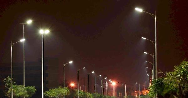 Un viale illuminato con lampade a led