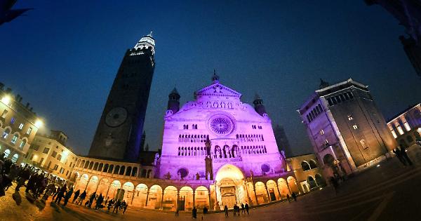 Il duomo di Cremona illuminato di viola