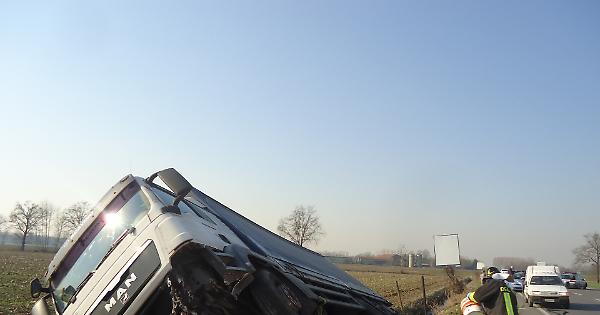 CASTELLEONE — Prima l’uscita di strada, spettacolare ma non grave; poi l’intervento dei vigili del fuoco per scongiurare il possibile inquinamento di una roggia. Giovedì 21 gennaio, poco prima di mezzogiorno, l’autista di un camion in viaggio lungo la Paullese ha perso il controllo del mezzo pesante, che si è inclinato e in parte ribaltato ai margini della carreggiata, in bilico tra un fosso e un campo. Lo schianto, per quanto violento e potenzialmente pericoloso vista la mole del veicolo, non ha generato conseguenze al camionista, un 51enne milanese uscito dalla cabina illeso, ma ha rischiato di provocare un serio danno ambientale.