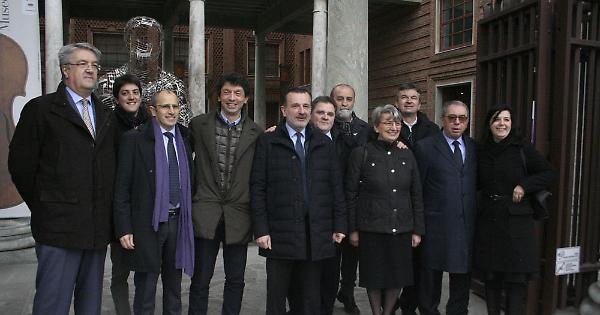 La Commissione e le autorità davanti al Museo del Violino
