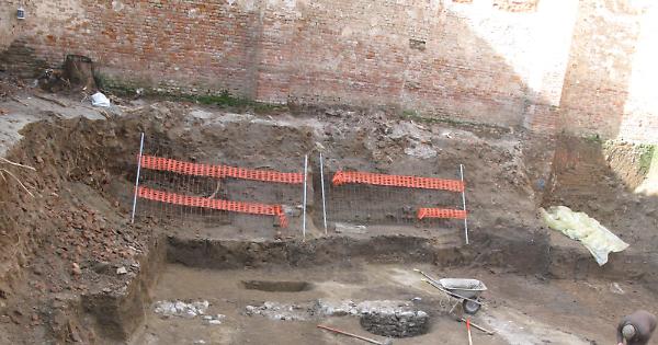I resti di un edificio quadrangolare ritrovati nell'ex Cavallerizza