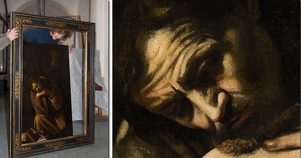 Il dipinto del Caravaggio restaurato e il particolare del volto