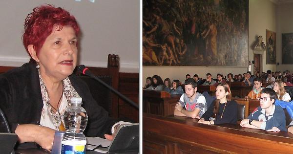 Ilde Bottoli e gli studenti nel salone dei Quadri