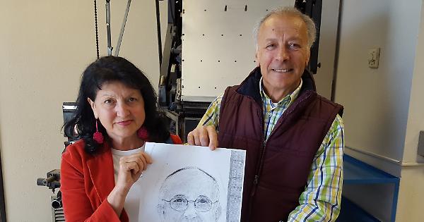 Antonietta Marsella con il marito Gianluigi Pettenuzzo e una copia del ritratto inviato a Papa Francesco