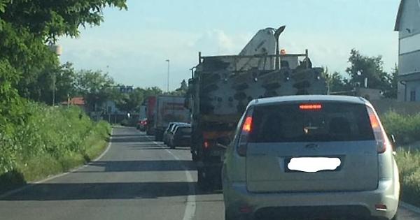 La coda di mezzi sulla via Brescia in direzione Robecco