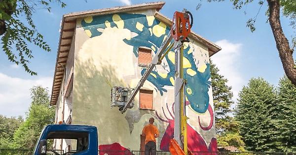 Il murales dipinto sulla facciata