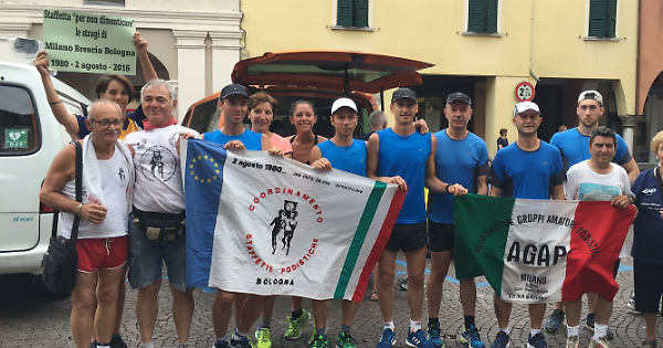 SONCINO - Domenica mattina, 31 luglio, il borgo ha celebrato insieme ai podisti del territorio la ricorrenza delle stragi terroristiche di Brescia, Milano e Bologna. Il sindaco Gabriele Gallina ha incontrato i marciatori camisanesi, milanesi e orceani e si sono scambiati doni e saluti ufficiali. Tappa poi sotto i potici per rifocillarsi e proseguire la staffetta.