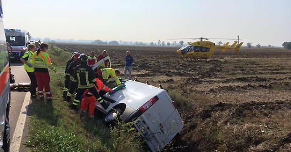 CAORSO - Incidente verso le 10 di giovedì 1 settembre fra Chiavenna di Cortemaggiore e Muradolo di Caorso all'altezza di località Ponteriglio dove pochi mesi fa sono morti un uomo e una donna in moto. Nel tentativo di evitare un mezzo agricolo che stava svoltando a sinistra, un 60enne piacentino a bordo di un furgone Citroen è finito nel canale contro un muretto. Ad avere la peggio il passeggero del furgone, un 37enne di Piacenza rimasto incastrato nel veicolo. Sul posto il 115 che ha sollevato il furgone, 118 e Pubblica assistenza per i soccorsi. Allertato anche l'elisoccorso di Parma ma alla fine il 37enne è stato portato in ospedale a Piacenza in ambulanza: ha riportato traumi e fratture, ma non è in pericolo. Strada 587 chiusa per circa un'ora, rilievi della polizia municipale dell'Unione della Bassa.