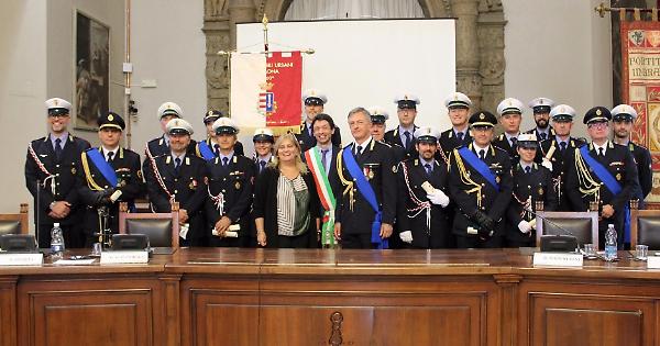 CREMONA - Sala dei Quadri di Palazzo Comunale gremita in occasione, giovedì 22 settembre, della cerimonia per il 156° anniversario della fondazione del Corpo della Polizia Locale dove le massime autorità civili e militari cittadine hanno presenziato ai discorsi celebrativi e alla consegna dei riconoscimenti. Di prima mattina è stata deposta una corona di alloro alla stele dedicata agli agenti della Polizia Locale che si trova al Civico Cimitero. Alle 10, nel cortile Federico II, è iniziato l'arrivo degli ospiti che si sono accomodati nella Sala del Consiglio dove hanno quindi preso posto gli agenti con il Gonfalone del Comune e con il labaro della Polizia Locale. La cerimonia si è aperta con la proiezione di un video, realizzato dalla stessa Polizia Locale, che ha offerto ai presenti uno spaccato dell'attività davvero complessa e variegata svolta dagli agenti quotidianamente. A seguire l'esecuzione dell'Inno nazionale, arrangiato per violoncello, da parte di Andrea Nocerino, allievo dell'Istituto di Studi Superiori Musicali “Claudio Monteverdi”.