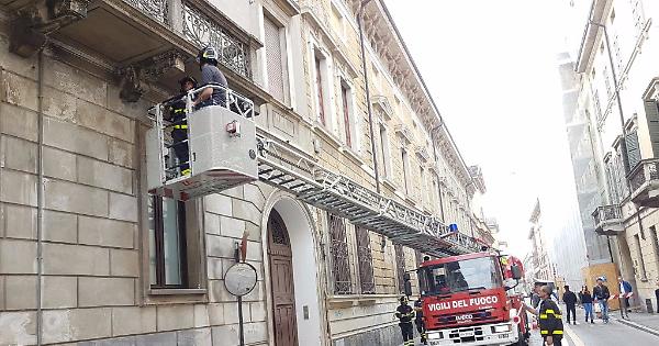 CREMONA - Intervento dei vigili del fuoco, nella mattinata di venerdì 30 settembre, per mettere in sicurezza il balcone di un palazzo di via Palestro, dal quale sono piovuti calcinacci. La strada è molto trafficata dagli studenti e da coloro che dalle stazioni ferroviaria e dei pullman si recano in centro città. Per fortuna non vi sono stati danni alle persone.