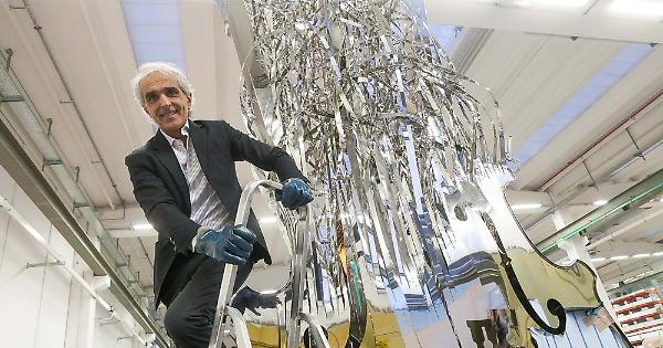 CREMONA - Eccolo, montato e pronto per essere installato, il ‘super violino’, come è stata ribattezzata la statua delle polemiche in arrivo sul piazzale della stazione ferroviaria, accanto al monumento di Giuseppe Garibaldi. In realtà, il nome corretto della scultura, progettata dall’architetto Giorgio Palù, è ‘L’anima della città’. La presentazione ufficiale dell’opera, in acciaio e alta 8 metri, realizzata e donata a Cremona dalla Steel Color spa di Pescarolo (azienda leader mondiale nella produzione di lastre d’acciaio Inox con finiture estetiche speciali), è in programma sabato 8 ottobre. Queste sono le prime immagini della statua. Nel frattempo, nella mattinata di mercoledì 5 ottobre, sono iniziati sul piazzale della stazione i lavori per l'installazione dell'opera.
