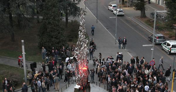 CREMONA - C’è la grande tradizione liutaria e la tecnologia all’avanguardia e, come ogni simbolo che si rispetti, il violino in acciaio di Giorgio Palù sintetizza, L’anima della città. E’ questo il titolo della scultura di circa otto metri e pesante due tonnellate che da sabato 8 ottobre fa bella mostra di sé sul piazzale della stazione. La fabbricazione si deve all’azienda Steel Color di Pescarolo di Stefano Ricci e Cristiano Guidani, mentre grazie a Linea Com l’opera si attiverà — grazie ad una serie di sensori — al passaggio delle persone accendendosi di musica, mentre l’anima fosforescente batte come il cuore.