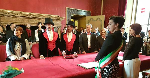 CREMONA - Roberto e Bruno hanno sancito la loro unione davanti alla legge. Sabato 15 ottobre alle 12 e 35 è stata celebrata la prima unione civile a Palazzo Comunale. Bruno ha dichiarato: è un momento importante. Siamo delle persone normalissime. Abbiamo imparato a difendere l'amore per la vita. Mancano due leggi. La legge contro la violenza alle donne e quella contro l'omofobia. Ma ci arriveremo. Applausi alla coppia in abiti ottocenteschi in sintonia con la sala giunta dove si è svolta la cerimonia.
