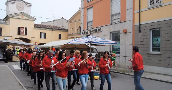 Il passaggio della banda durante una passata edizione della sagra di San Gaudenzio a Ostiano