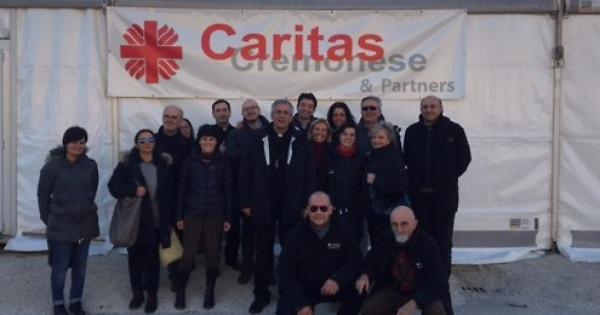 CAMERINO/SAN SEVERINO MARCHE - Il Sistema Cremona "adotta" Camerino e San Severino Marche, terre colpite dal terremoto. L'ufficializzazione durante il viaggio del sindaco Gianluca Galimberti, della Presidente del Consiglio Simona Pasquali e dell'assessore Alessia Manfredini con il vescovo Antonio Napolioni nelle terre in cui è attiva da settimane la Caritas Cremonese. Con loro don Antonio Pezzetti e Cristiano Beltrami della Caritas Cremonese e Rosolino Azzali in rappresentanza dell'Unione dei Comuni Oglio Ciria con Corte de Frati, Grontardo, Olmeneta e Scandolara Ripa d'Oglio. Prima tappa a Pian di Pieca (frazione di San Ginesio) dove, presso la Parrocchia S. Maria Assunta c’è la base operativa di Caritas Cremonese con l’operatrice Nicoletta d’Oria Colonna e il volontario Fermano Nobili. Poi, l'inaugurazione delle due nuove tensostrutture della Caritas Cremonese, a Camerino e a San Severino Marche (dove nel pomeriggio il vescovo Antonio ha celebrato la messa), luoghi messi a disposizione delle comunità per attività civili e religiose. Proprio a queste tensostrutture sono destinati i fondi (circa 20mila euro) raccolti fino ad oggi dal Sistema Cremona sul conto istituito per volontà del Comune presso la Fondazione Città di Cremona. E a queste saranno destinate le ulteriori donazioni che arriveranno. "Abbiamo portato qui il cuore dei cremonesi che hanno dimostrato da subito la loro generosità e la loro solidarietà verso le popolazioni colpite dal terremoto - ha detto il sindaco Galimberti - Comune capoluogo, comuni del territorio e diocesi insieme per sostenere una terra che ha tanta voglia di ripartire. Voi -si è rivolto il Sindaco alla popolazione - ci insegnate che la cosa più importante è la comunità, sono le relazioni tra le persone. Cremona vi vuole bene". La raccolta delle donazioni del Sistema Cremona non si ferma qui. Ecco le coordinate per chi vuole sostenere il progetto di aiuto a Camerino e San Severino Marche: SISTEMA CREMONA PRO TERREMOTO CENTRO ITALIA - C/O FONDAZIONE CITTA’ DI CREMONA - Cod. IBAN: IT10 G 05696 11400 000004427X00.