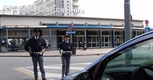 La polizia durante un controllo nel parcheggio esterno dell’ospedale