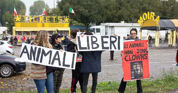 Un sit-in davanti a un circo in una foto di repertorio