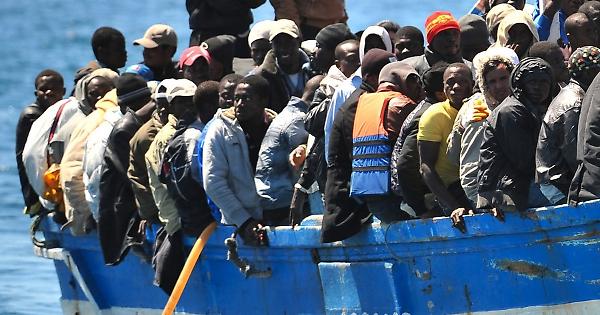 Un barcone stracolmo di migranti