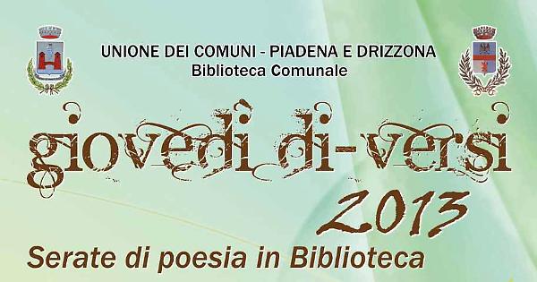 PIADENA - Alle 21 di giovedì 7 marzo prende il via la rassegna 'Giovedì di-versi', tre serate di poesia in biblioteca. Primo appuntamento con Alberto Mori. Titolo: 'Procedure', viaggio nei non luoghi della poesia (attraverso reading, performance, videoproiezioni.