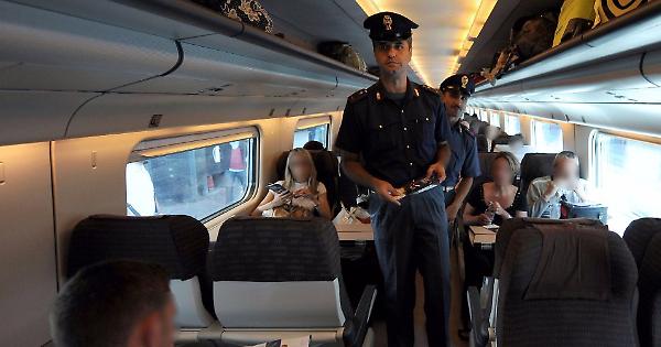 Agenti della polizia ferroviaria impegnati in un controllo a bordo di un treno