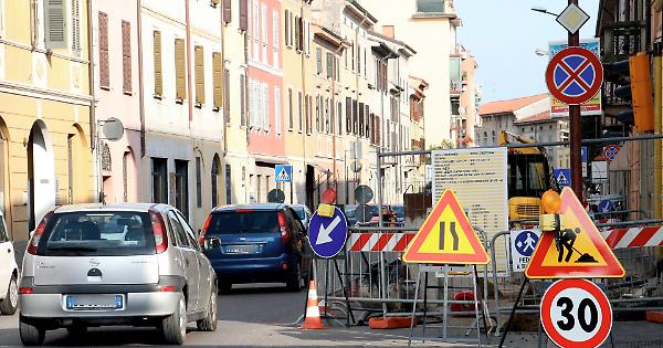 Uno scorcio di via Giordano, con il traffico rallentato in occasione di un recente cantiere