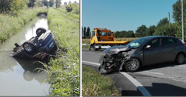 PIEVE SAN GIACOMO - Scontro tra due auto all'incrocio tra la provinciale 33 e la via Postumia, dopo le 9 di lunedì 21 agosto. La jeep condotta da una 38enne di Gussola, dopo un volo di dieci metri, è finita in un canale colmo d'acqua. Ferite di media gravità per la donna e per l'altro autista, un 43enne di Cremona.