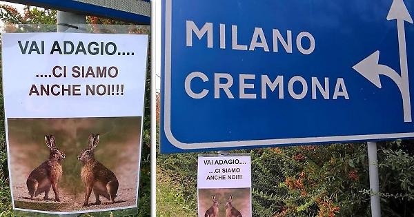 CAPPELLA CANTONE - Blitz animalista o furbata di qualche cacciatore per ‘conservare’ intatta la selvaggina in vista dell’imminente stagione venatoria? Le foto e le scritte che da qualche tempo compaiono sui cartelli stradali di Cappella Cantone, sono un enigma al momento senza soluzione. Le immagini ritraggono due teneri leprotti nell’erba, e sono accompagnate da un messaggio rivolto evidentemente agli automobilisti: «Vai adagio, ci siamo anche noi». Le foto con i leprotti stanno già facendo discutere sui social.