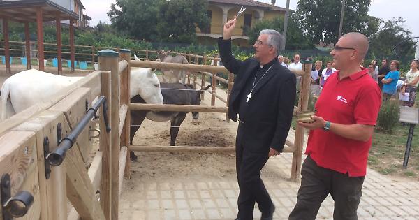 GRUMELLO - Visita e benedizione del vescovo Antonio Napolioni, nel pomeriggio di giovedì 7 settembre, agli asinelli dell’Isla de Burro di Zanengo, il centro gestito dalla Caritas che utilizza una quindicina di questi docili animali per la pet-therapy. Accolto dai parroci dell’unità pastorale di Grumello, Crotta, Zanengo e Farfengo don Ettore Dominoni e don Stefanito Lazzari, dal direttore della Caritas don Antonio Pezzetti e dal sindaco Fabio Scio, il presule ha visitato la chiesa di San Materno e la struttura alle sue spalle, guidando, alla presenza di tanti residenti, una breve riflessione sulla dodicesima giornata per la ‘Custodia del Creato’.