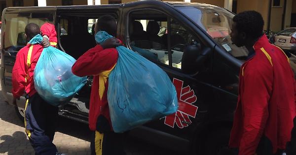 Migranti appena arrivati alla Casa dell'Accoglienza