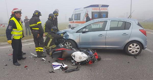 CREMONA - Scontro tra auto e moto attorno alle 8 di martedì 17 ottobre in via Eridano. Ad avere la peggio il 17enne che era alla guida della due ruote, il quale è stato trasportato in ospedale in codice giallo (ferite di media gravità) per le cure del caso. Non sarebbe in pericolo di vita. Soccorsa anche la donna alla guida della vettura, sotto choc per lo scontro. Sul posto sono arrivati i soccorritori della Croce verde, i vigili del fuoco e quattro pattuglie dei vigili urbani, una che ha bloccato via Trebbia e altre tre che hanno diretto il traffico. La dinamica dell'incidente è proprio al vaglio degli agenti della polizia locale. Sul posto la visibilità non era perfetta per la presenza di nebbia.