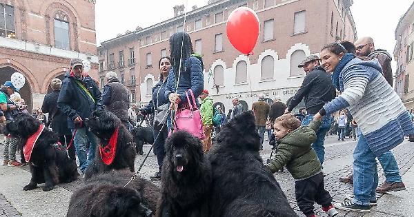 CREMONA - Cremona ‘capitale’ dei Terranova. E' accaduto domenica 22, giorno dell’evento organizzato dall’associazione ‘New foundly’, di Roma, diretta da Isabella Cardea, che da qualche anno si dedica a far conoscere questi cani, organizzando raduni in giro per l’Italia, due volte l’anno, ed ogni volta in una città diversa. Cremona è stata scelta per il diciottesimo raduno, che prevedeva una passeggiata. In piazza del Comune c'è stata la benedizione dei cani con il lancio di palloncini in ricordo di quelli morti quest’anno. «I cani sono tutti in regola con i documenti e con le vaccinazioni - prosegue Cardea -, tenuti al guinzaglio e ben condotti da tutti i miei amici. Sono cani occupati in molte attività a scopi sociali e sportivi, cani da soccorso in mare (unità cinofile della Protezione civile), cani da pet terapy impiegati nelle scuole, nei centri anziani e nelle carceri».
