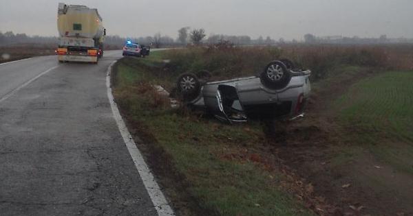 TRIGOLO - Uscita di strada da brividi, giovedì 9 novembre poco prima delle 15, lungo la strada che collega Trigolo a Soresina. Un 63enne è rimasto ferito, fortunatamente in modo non grave a dispetto degli iniziali timori, dopo che l'auto sulla quale viaggiava è finita con le ruote all'aria in un campo adiacente la carreggiata. Sul posto polizia stradale (che dovrà ricostruire la dinamica del'accaduto) e il 118.