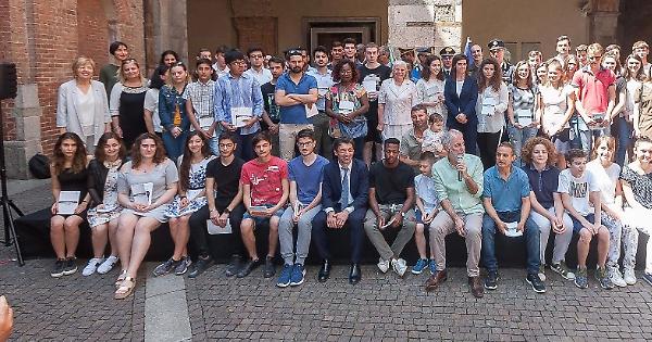 CREMONA - Come da tradizione, è stato il Cortile Federico II a fare da cornice all'iniziativa del Comune '2 Giugno - Siamo cittadini' dedicata alle ragazze e ai ragazzi che hanno compiuto 18 anni, e agli stranieri residenti a Cremona che hanno acquisito la cittadinanza italiana. Per tutti la consegna della Costituzione italiana e dello statuto comunale, oltre ad un testo realizzato dalla classe II B LSA del liceo scientifico Aselli dal titolo 'In poche parole Costituzione'. Momento musicale in collaborazione con alcuni giovani musicisti cremonesi.