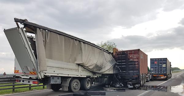 CREMONA - Secondo schianto sull'autostrada A21, dopo il tamponamento a catena di questa mattina. Questa volta l'incidente ha coinvolto tre camion, con due feriti, fortunatamente non gravi. Uno dei tre tir trasportava vernice, che si è riversata sulla carreggiata. Immediata la mobilitazione dei vigili del fuoco accorsi per, tra l'altro, ripulire il manto stradale. Autostrada quindi chiusa e traffico in tilt.