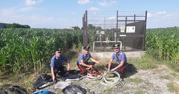 CORTE DE CORTESI CON CIGNONE - Trovati in un campo nei pressi della zona industriale di Cignone, nascosti tra le piante di mais, al'interno di numerosi sacchi di plastica, 250 chili di cavi di rame. I carabinieri li hanno scoperti durante una serie di controlli nei pressi di alcuni capannoni dismessi. Il rame, verosimilmente rubato proprio dalle strutture abbandonate dell'area, sarebbe probabilmente stato prelevato poco per volta in modo da non destare alcun sospetto. Il materiale è stato sequestrato e i militari cercheranno di risalire alla provenienza.
