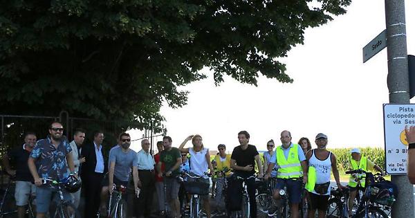 CREMONA - E' stata inaugurata la pista ciclo pedonale in via Sesto nel tratto compreso tra via De Berenzani e la rotatoria di via del Commercio. A tagliare il nastro sono stati il sindaco Gianluca Galimberti, i tecnici di RFI Michele Di Mercione e Gabriele Spirolazzi, l’assessore alle Infrastrutture Alessia Manfredini, il Consigliere comunale con delega al Biciplan Filippo Bonali, i tecnici del Comune che hanno seguito i lavori e soci di Biciclettando Fiab Cremona. Hanno partecipato all’inaugurazione anche i rappresentanti del Comitato di quartiere 3 Cavatigozzi e San Predengo.