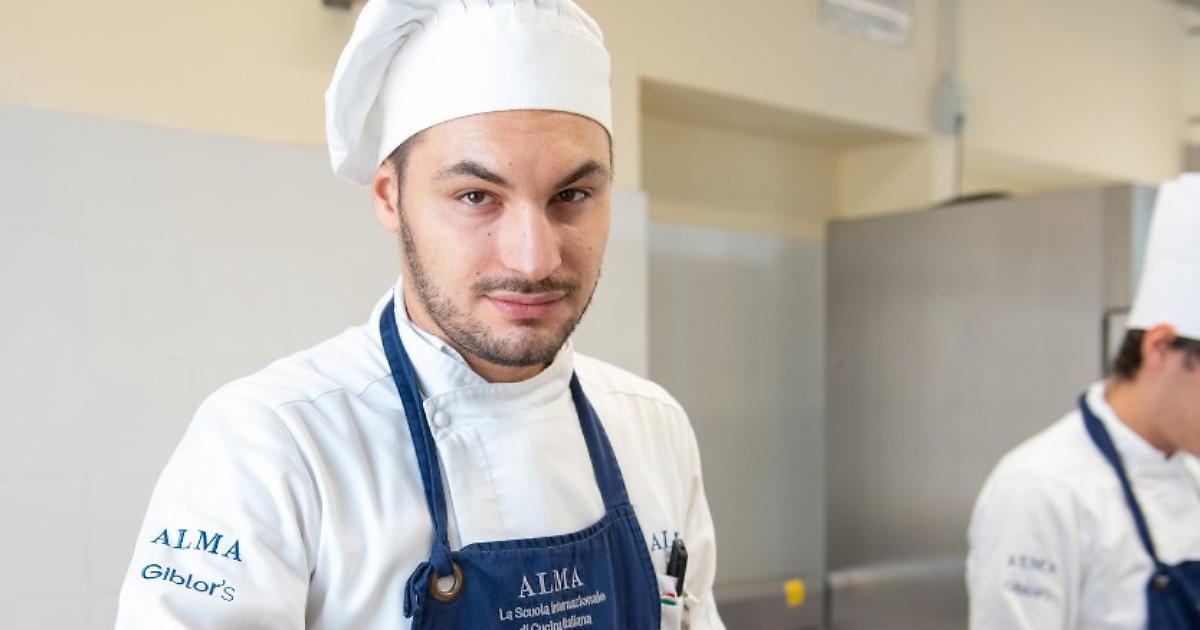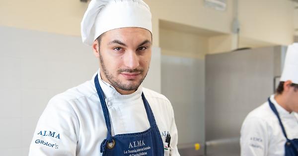 Lo chef Giulio Gerevini durante l'esame conclusivo all'Alma