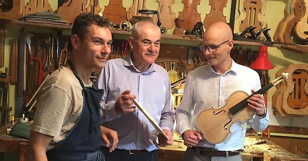 Stefano Conia junior, Stefano Conia e Marton Donovan nella bottega del liutaio di origine ungherese