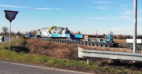 ROBECCO - In viaggio dall’Oglio fino all’Oriente: un trasporto eccezionale di un macchinario da 420 tonnellate ha tenuto con il fiato sospeso due paesi. Nella tarda serata di giovedì 3 un convoglio composto da due rimorchi snodabili e della lunghezza di 67 metri ha infatti attraversato i centri abitati di Robecco e Pontevico, suscitando interesse e curiosità tra i cittadini. Enorme il carico partito il 20 dicembre da Terno d’Isola (Bergamo) e destinato in Asia: un condensatore di carbammato, ovvero uno scambiatore di calore per un’industria chimica e di fertilizzanti, lungo 28 metri. Nonostante l’enorme mole e la difficoltà dell’operazione tutto è andato per il meglio. Intere famiglie si sono riversate in strada per ammirare il passaggio dell’enorme tir. Il particolare episodio resterà a lungo nella memoria delle due comunità. Anche se presto le cose potrebbero cambiare: sta infatti procedendo in maniera spedita l’iter relativo alla realizzazione della tangenziale tra Robecco e Pontevico. Opera, che prevede la costruzione di un nuovo ponte sul fiume Oglio, che una volta conclusa devierà l’intero traffico pesante fuori dai due centri abitati.