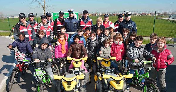 CASALMAGGIORE — Bimbi a lezione di educazione stradale. E’ iniziato giovedì mattina, presso il campo scuola allestito presso le elementari in zona Baslenga, il ciclo di incontri coordinato dall’associazione carabinieri in congedo sezione di Casalmaggiore con l’aiuto della Polizia locale e degli insegnanti dell’istituto scolastico. Ieri, secondo giorno di lezioni, a cimentarsi sul campo sono stati gli alunni della 2B: per loro le spiegazioni relative alla segnaletica stradale e al corretto comportamento da tenere in strada da parte degli agenti di via Saffi, poi la prova pratica con biciclette o mini quad elettrici. Il progetto di educazione stradale coinvolge tutti i bambini dalla scuola materna fino alla quinta elementare, anche con prove su strada riservate agli alunni più grandi.