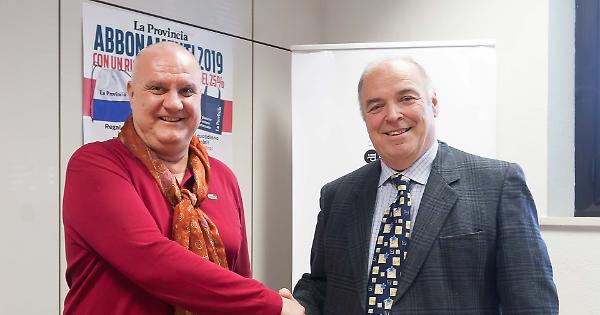 Giovanni Moschetti e Giordano Nobile si stringono la mano in redazione