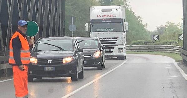CREMONA/CASTELVETRO (9 maggio 2019) - Iniziati i carotaggi sul ponte propedeutici all'intervento di manutenzione straordinaria del 2020: senso unico già attivo e disagi... con mezzi pesanti che come sempre ignorano il divieto.