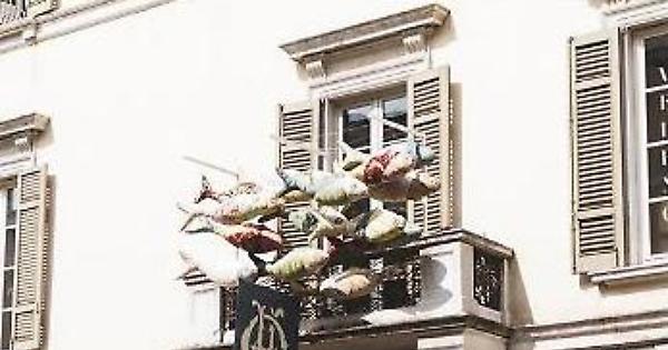 BRESCIA (21 maggio 2019) - Un banco di pesci che guizza… nel cielo di Brescia. Uno spettacolo da ammirare - ancora per una manciata di giorni - alzando gli occhi oltre l’insegna del gourmet restaurant Veleno, a Palazzo Martinoni, in via Gramsci 10, nel cuore del centro storico della Leonessa. I quattordici grandi pesci volanti compongono l’installazione No More Room in the Lagoon, progettata dall’artista Anna Paola Cibin ed esposta per la prima volta sul Canal Grande durante la Biennale d’Arte del 2013, prima di girare il mondo tra New York e Parigi, Singapore e Londra. L’opera realizzata con preziose sete, velluti, broccati e dettagli di vetro di Murano e foglia d’oro, con i grandi occhi dipinti delle creature acquatiche che guardano il mondo da altrove, trasforma il cielo di Brescia in un mare caleidoscopico.