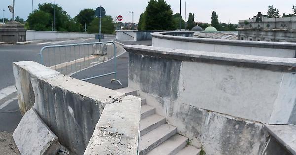 CREMONA (3 luglio 2019) - Perde i pezzi il cavalcavia che, dal 1930, permette ai cremonesi di accedere al cimitero senza più dover attendere al passaggio a livello di via dei Platani. In particolare a cadere sono le lastre di marmo sulle scalinate del ‘Monumento ai caduti della rivoluzione’. Non più solo graffiti e incuria, quindi, e le scalinate sono transennate ormai da qualche settimana. «Le lastre - spiega Marco Pagliarini, dirigente del settore Lavori pubblici del Comune - sono inchiavardate con chiodi che hanno quasi cento anni e ogni tanto qualcuno cede. Noi le teniamo costantemente monitorate, rimuovendo quelle che si muovono. Negli anni ne abbiamo già sistemate parecchie. Tuttavia per un restauro complessivo servirebbe un progetto di manutenzione straordinaria dal costo che potrebbe cubare oltre un milione di euro».