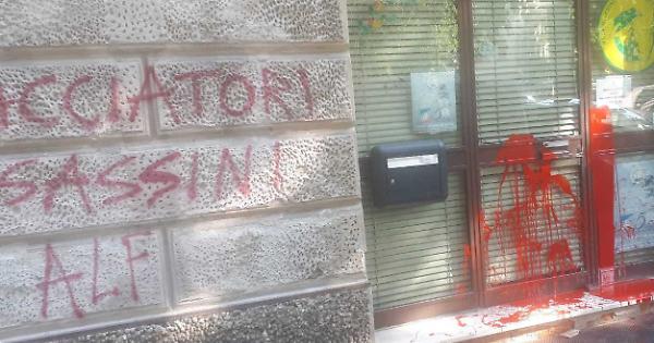 CREMONA (9 settembre 2019) - Vandali scatenati presso la sede della Federazione italiana della caccia, gli uffici che si trovano in via Ghinaglia, di fronte al torrione. All’alba, ignoti sono intervenuti muniti di bombolette spray e vernice rossa, decisi a forzare la porta e a far danni all’interno. Non riuscendo a forzare la serratura, si sono scatenati sulla vetrina, completamente imbrattata con la vernice, e sul muro adiacente, dove hanno lasciato una scritta contro i cacciatori, dal contenuto inequivocabile, e la sigla Alf, acronimo del Fronte di liberazione animale (Animal liberaion front). Una volta verificata l’incursione, i responsabili provincial di federcaccia hanno subito allertato le forze dell’ordine. Sul posto sono giunti i carabinieri e gli agenti della Digos, che hanno raccolto vari elementi.