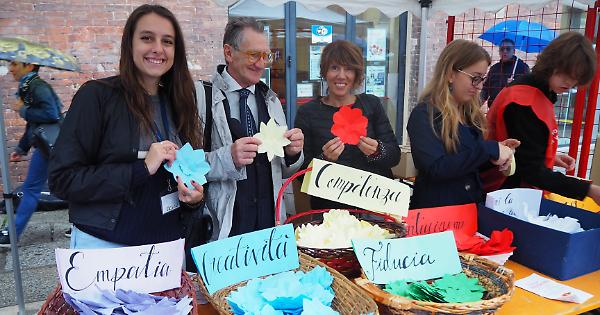 CREMONA (22 settembre 2019) - Non è bastato il cattivo tempo a rovinare la Festa del Volontariato che oggi, per la sua ventottesima edizione, ha radunato fra piazza del Comune e Stradivari oltre 120 associazioni per una giornata interamente dedicata al volontariato e all’impegno per il bene comune. “Meno Soli, Più Solidali – Accoglienza, Territorio, Bene Comune” - questo il titolo dell’edizione 2019 - è stata organizzata dalle associazioni di volontariato del territorio cremonese insieme al comitato promotore composto da CSV Lombardia Sud, Forum del Terzo Settore e Comune di Cremona. Oltre alle associazioni erano presenti anche molti dei soggetti che - cooperando con realtà del non profit locale - concorrono alla cura del bene comune e all’opera di inclusione e sostegno alla parte più fragile della comunità cremonese (fra questi Fondazione Comunitaria della Provincia di Cremona, Regione Lombardia-Rete Europe Direct ed EURES, ATS Val Padana, ASST Cremona, Cremona Solidale, Ordine degli Psicologi della Lombardia, Azienda Sociale Cremonese e Provincia di Cremona oltre a Cassa Padana BCC e Padania acque aziende che storicamente sostengono economicamente l’evento).