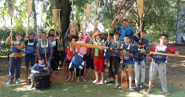 CREMONA (9 ottobre 2019) - Il suono del tamburo rimbomba sul fiume deserto, alla sollecitazione del ritmo 20 raggianti ragazzini rispondono affondando le pagaie, spingendo questa strana, lunga, canoa, che taglia la corrente come una spada mentre un cormorano, a volo radente, quasi sfiora la prua. Il Po entra nelle scuole, e non per una piena, ma per una festa di sport e di natura.